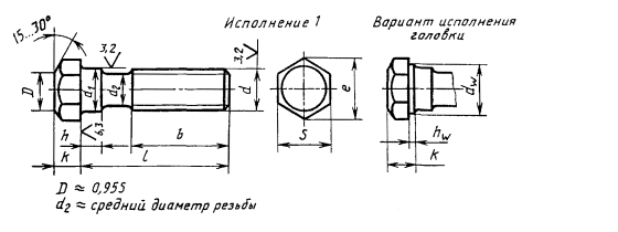 - Болт с шестигранной уменьшенной головкой и направляющим подголовком, класс точности А ГОСТ 7811-70